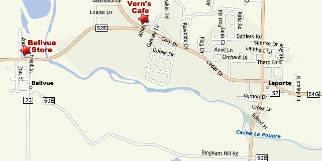 Map to Bellvue, Colorado